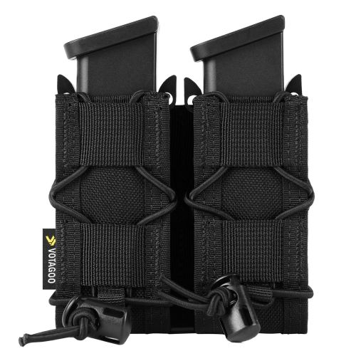 [Mag Pouch Material]MOLLE magazine pouches 9mm constructed from 1000D nylon. The fabric is durable, abrasion-resistant, and stretchy. Secured in place by elastic band, easy to adjust elastic band to keep mag reaches the most stable state, prevent your magazines or tools from falling out while running. This is the choice of most law enforcement officers and it fits most devices with the Molle system.