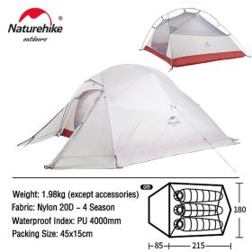 Naturehike Cloud Up 1 2 3 People Tent Ultralight 20D Camping Tent Waterproof Outdoor Hiking Travel Tent Backpacking Cycling Tent (Color: 2 Person Gray)