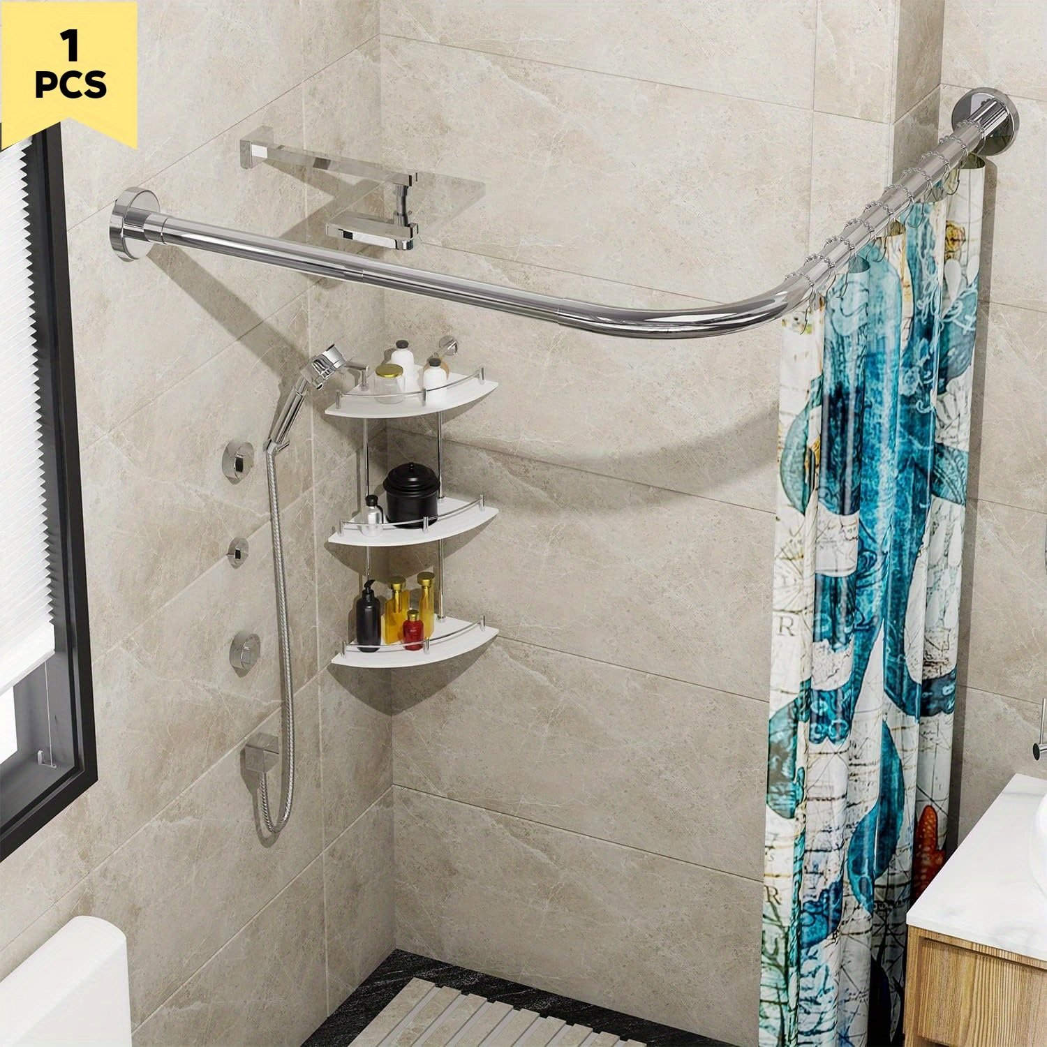 Stretchable 304 Stainless L Shaped Bathroom Bathtub Corner Shower Curtain Rod Rack, Drill Free Install, for Bathroom, Clothing Store