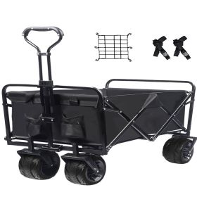 Collapsible Heavy Duty Beach Wagon Cart Outdoor Folding Utility Camping Garden Beach Cart with Universal Wheels Adjustable Handle Shopping (Color: Black)
